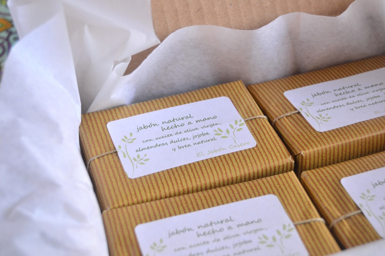 Después llega un bonito momento de envolver las pastillas a mano y una a una, por supuesto. Siempre me gusta elegir papeles, telas, cordones y otras cositas bonitas para dar un aspecto agradable a cada uno de mis jabones.